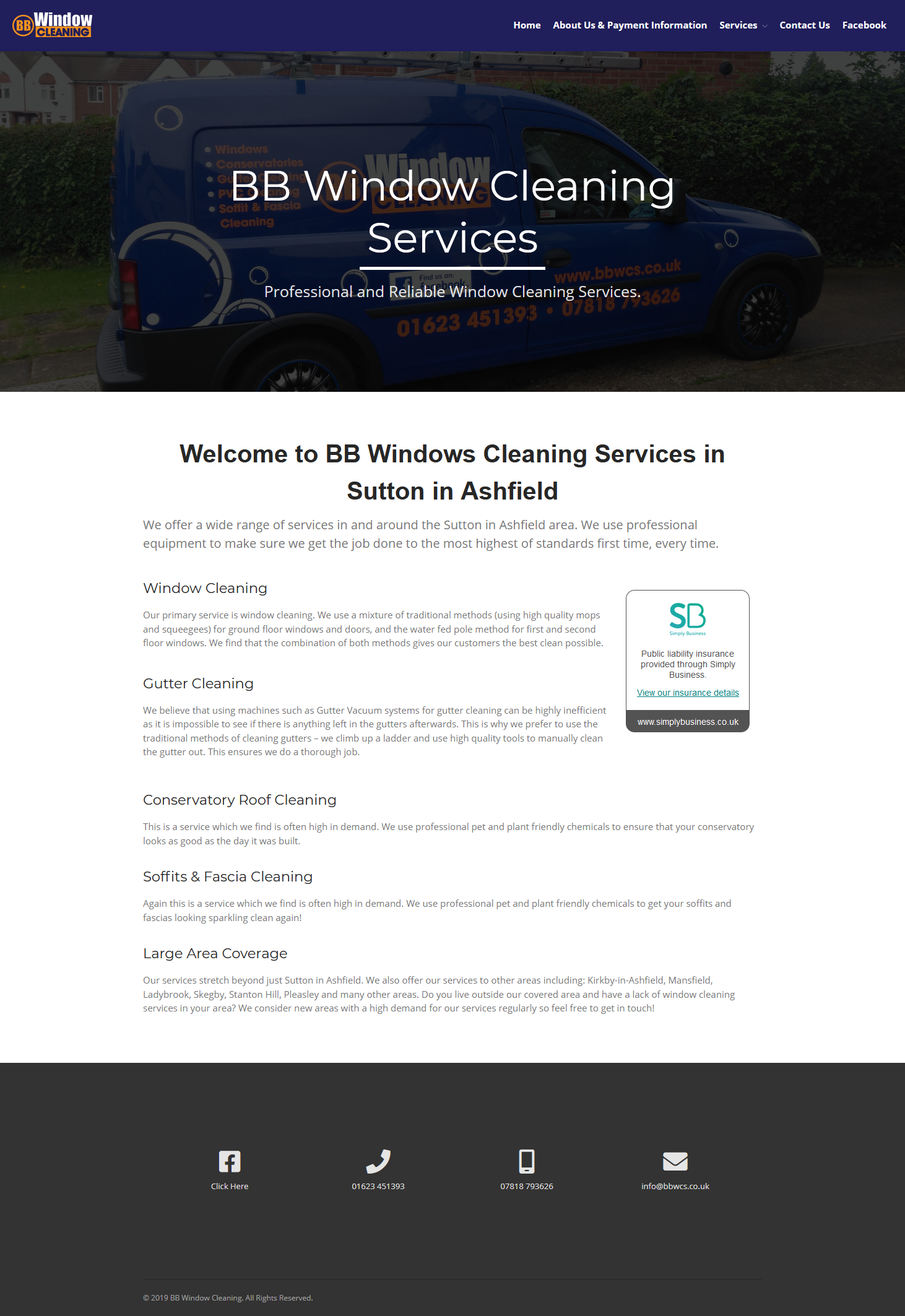 My father was looking to expand his business and approached me with the idea of building a website to make BBWCS (BB Window Cleaning Services) accessible to more clients. The website had to be easy-to-use for all of his clients, spanning most age demographics. After we purchased the domain, I quickly built a custom website in pure HTML, JS and CSS.