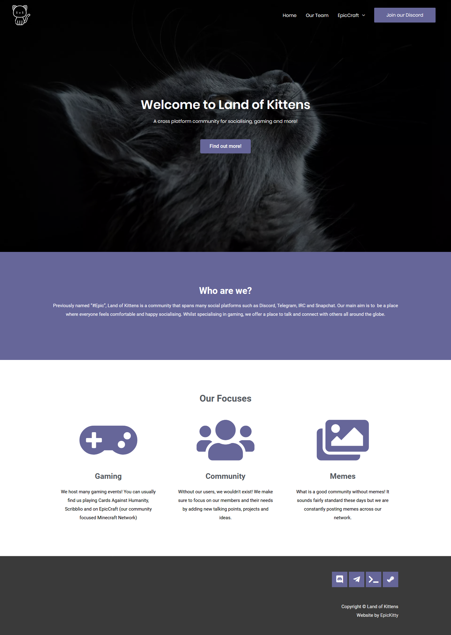 The website is currently used as a means for us to provide additional information on what’s happening in the community as well as to showcase some of our community members’ creations on Land of Kittens’ accompanying Minecraft server.