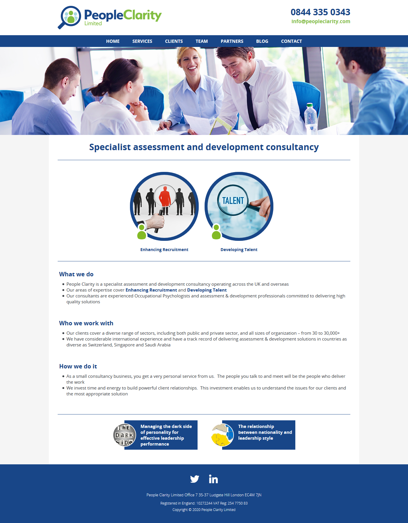 Since then, the website has had a few upgrades including an upgrade to the WordPress CMS. Moving to WordPress has made the website a lot easier for us to edit the content and has given us additional features to work with, such as a responsive layout, a contact form and an analytics engine which has helped us improve the experience for his clients.